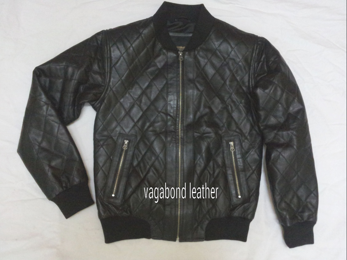 leather quilted bomber jacket